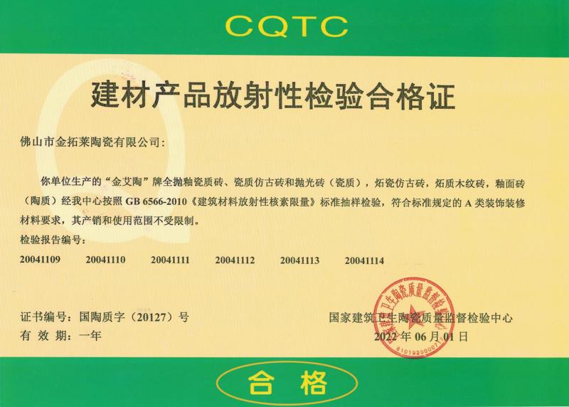 建材產品放射性檢驗合格證