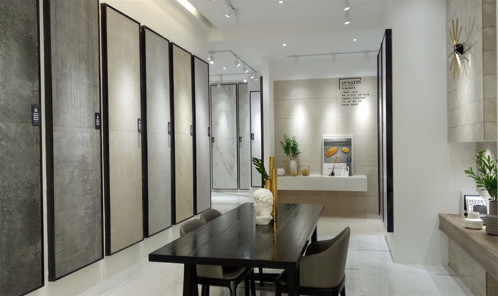 4/這是大板的選材區,選用打豎的陳列方式,射燈照射下的產品,干凈、整潔、大氣、直觀。