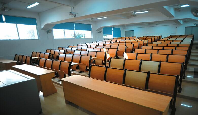 在大教室里,設計師要營造的是活躍的氛圍,椅子選用兩個顏色組合,錯開擺放不會顯得過于沉悶。綠色又是代表著生機的顏色,勃勃生機,欣欣向榮,對保護孩子視力也有很大幫助。