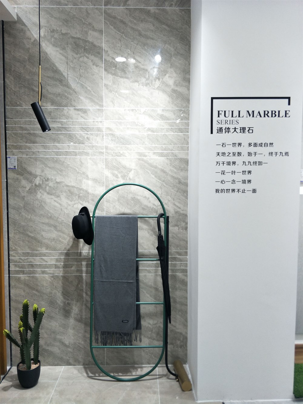 往里邊走,這logo背景墻是由九面通體大理石KA9M61209尼泊爾灰單獨(dú)鋪貼,九面通體大理石是我們店的暢銷產(chǎn)品,它的多面設(shè)計個性獨(dú)到,深受各年齡段的消費(fèi)者喜愛,不知道您覺得怎么樣呢?