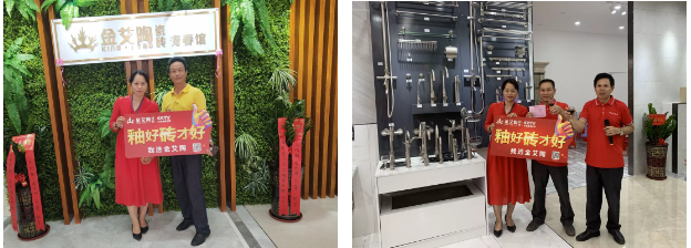 東莞虎門青春館從店面設計、軟裝搭配、導購培訓到開業,廠家人員都分別派出了專業人員到現場指導工作,金艾陶瓷磚銷售三部總經理兼品牌戰略部副總蔡偉鵬更是前后三次到場指導工作,“只要簽約金艾陶瓷磚,我們就能承諾提供"保姆式"幫扶。”這是蔡總的原話。