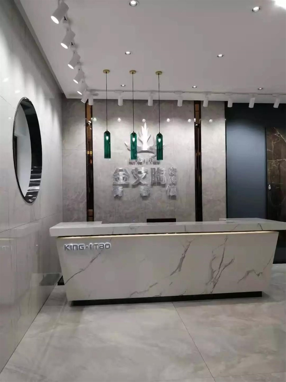 暖灰色通體大理石KA9M009打造前臺背景墻非常有味道,不愧是多年的暢銷榜長青樹。