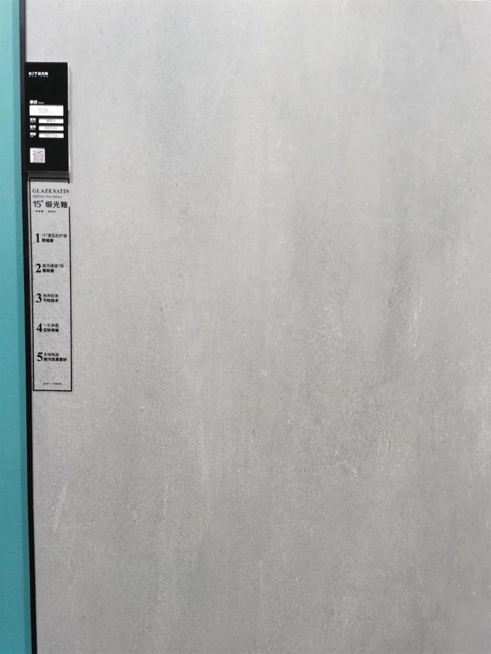 劉總:傳統拋釉磚會慢慢被淘汰。與傳統拋釉、仿古、柔光磚相比,緞光釉最大的優勢是沒有拋過,釉料是自主研發的優質緞光釉釉料,從窯爐出來就呈現15度的光澤,很接近天然石材的自然光澤,不刺眼,不傷眼。釉層厚實無毛細孔,防污、防滑,你用手掌摸一下就知道,柔和溫潤,很像嬰兒的肌膚一樣細膩。