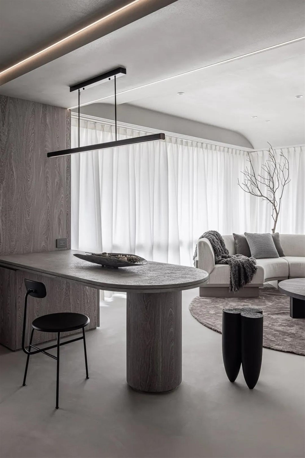 在簡單的材質(zhì)中找到質(zhì)感藝術(shù)的存在,是這個空間的吸引力