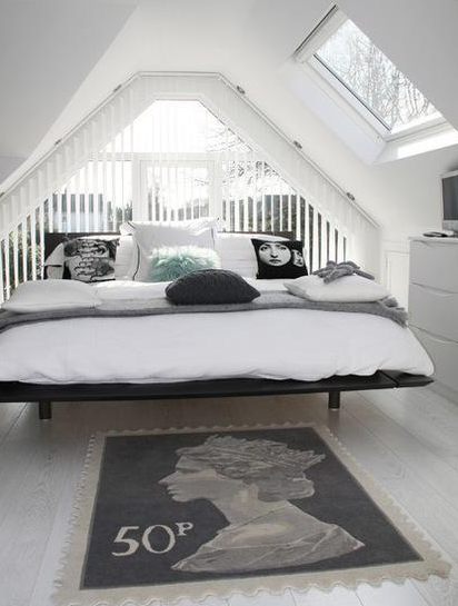 想必應(yīng)該沒(méi)有人禁止你把家具放在窗戶旁邊吧。這張床的擺放充分利用的小閣樓的結(jié)構(gòu)造型。垂直的百葉窗在阻擋過(guò)多的陽(yáng)光的同時(shí)保護(hù)了主人的隱私。