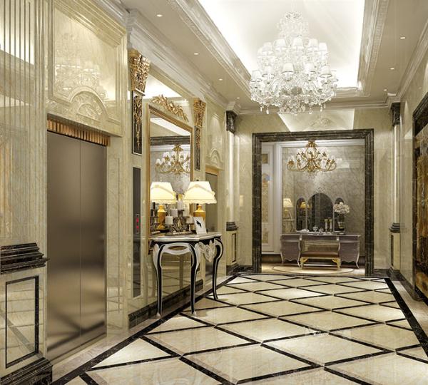 此空間采用金艾陶大理石瓷磚系列.金黃天龍進行墻面鋪貼,細細的品味觸摸給人無盡的遐想,是自然界完美的饋贈。淺黃色底紋融合啡色線條,張揚而不失穩重,絢麗而不失優雅,使整個空間的裝飾效果大氣而奢華。