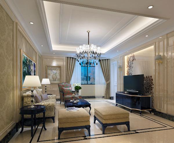 米黃的燈光與陶瓷一線品牌金艾陶2.0厚微晶石瓷磚:埃及·米黃KWD58021形成統一色調,簡歐風格簡潔時尚,彌漫著假期慵懶的氣息,簡潔干凈的客廳昭示著主人良好的衛生習慣。