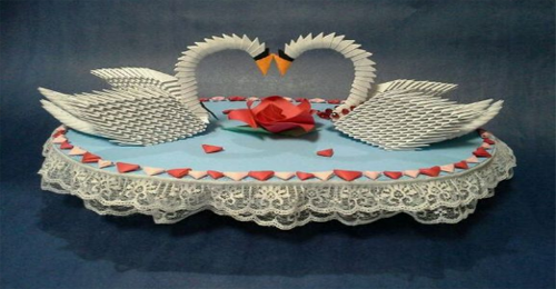 各種樣式的剪紙、千紙鶴、紙質模型等