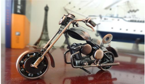 以鐵為原材料,通過熔鑄、焊接等方式制成的小擺件,常見的鐵藝品有插花桶、筆筒筆座、鐵質模型等.
