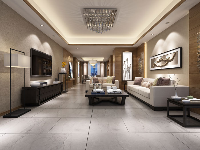 陶瓷一線品牌金艾陶瓷磚阿瑪羅尼仿古磚KFT126A359客廳效果圖