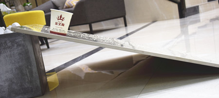 瓷磚的抗壓性,若達不到國家標準的要求,使用過程中會造成瓷磚的開裂、斷裂,影響使用。先把瓷磚傾斜放置,然后邀請了三位男壯士體重超過210Kg的站在瓷磚上面,瓷磚表面并沒有發(fā)現(xiàn)任何異常,這說明該瓷磚的抗壓性能非常好。