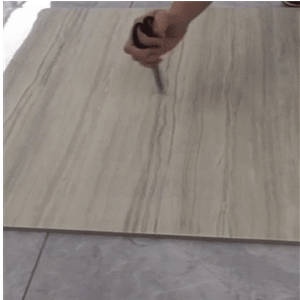 測試人員為了檢測這款瓷磚的耐磨真實性,用專業(yè)礦物硬度標本(即莫式硬度計)5度的礦物硬石在瓷磚上來回劃過后,發(fā)現(xiàn)瓷磚表面沒有留下任何的劃痕。再取一尖銳的銼刀,在瓷磚上來回快速刮磨,被用力刮磨后的瓷磚無任何磨損刮痕,紋理無斷層、瓷面無破壞,瓷磚仍然平整、光滑,說明這款瓷磚的耐磨性能很強大。