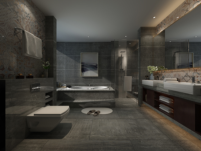 墻面與地面保持一致,用別具一格的現代仿古磚鋪貼,烘托簡約、時尚的品味。