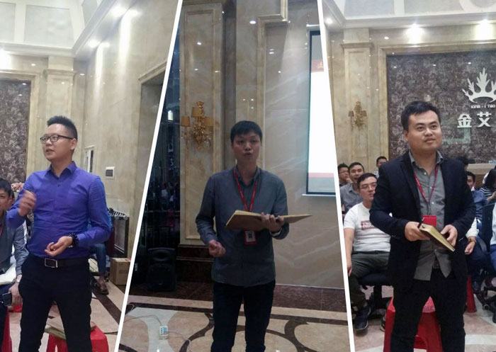 2017年11月3日上午,陶瓷一線品牌金艾陶瓷磚10月總結會議在營銷中心新建的二樓會議室順利召開。此次的會議議程為:在宣布銷售團隊10月份陶博會PK賽結果后,主持人又宣布了10月份金艾陶銷售冠亞軍,接下來由南、北銷區及廣東區進行團隊風采展示,緊接著由各部門主管做2017年10月工作總結及11月工作計劃,最后,由金艾陶瓷磚品牌營銷總經理羅勝做整體工作總結及規劃。