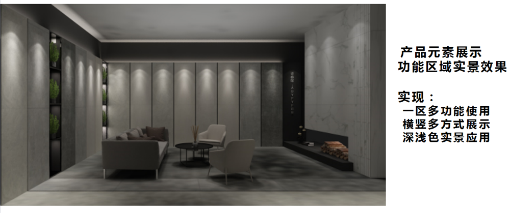 大規格產品在終端青春館展示,設計師考慮的要點是要消費者能直觀感受到產品的豐富紋理、質感、色彩,從而推動終端銷售,這些要點我們的設計師都考慮周到了,雙層360°立體展示,燈光采用燈槽和射燈,照射出產品逼真、自然、大氣的紋理。