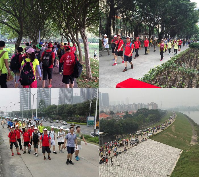 金艾陶人始終秉持著挑戰極限,信念可以戰勝一切困難的精神。在4月25日佛山50公里慈善徒步行活動中,金艾陶人用超強的耐力與毅力,挑戰自身極限,用雙腳丈量佛山,留下了“艾”的足跡。